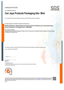 Can Jaya with the consistent endeavors in manufacturing products packaging as well as high level of target enable us to entitle with the following certificate that granted base on the satisfactory surveillance audits.