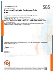 HACCP Codex Alimentarius by SGS (Malaysia) Sdn Bhd – Obtain on 5th Apr 2014